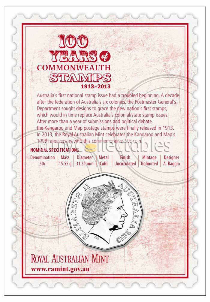 2013 50c Uncirculated Coin - 100 Years of Commonwealth Stamps