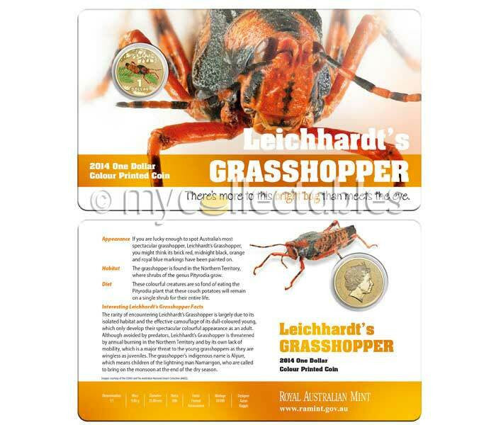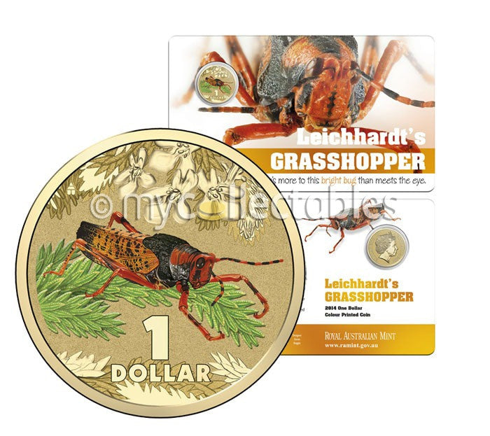 2014 $1 AlBr Colour Printed Coin - Bright Bugs: Leichhardt's Grasshopper