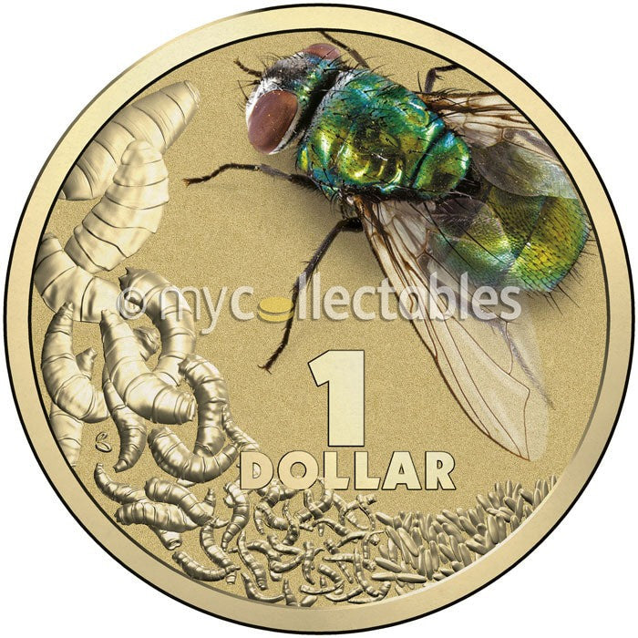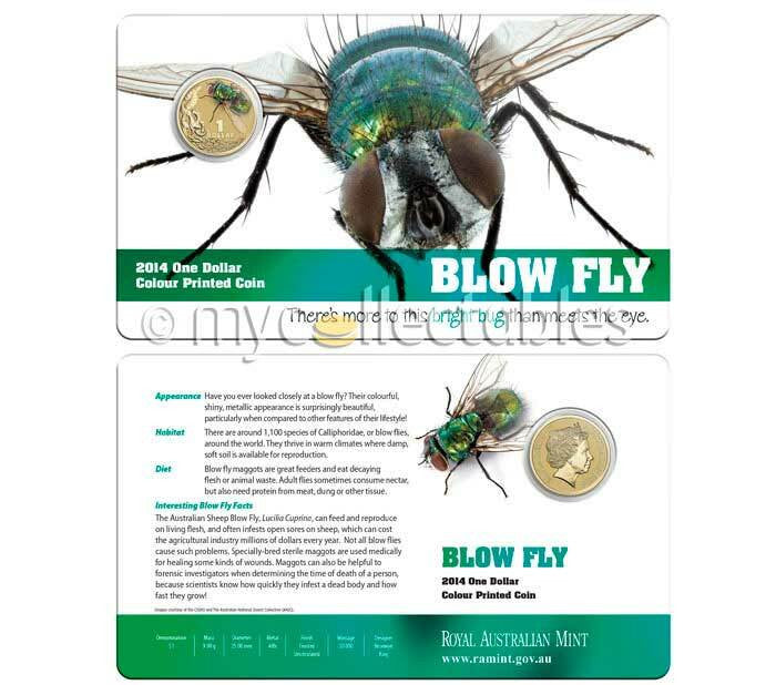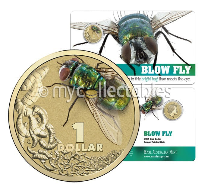 2014 $1 Colour Printed Frosted Uncirculated Coin - Blow Fly - Bright Bugs Series