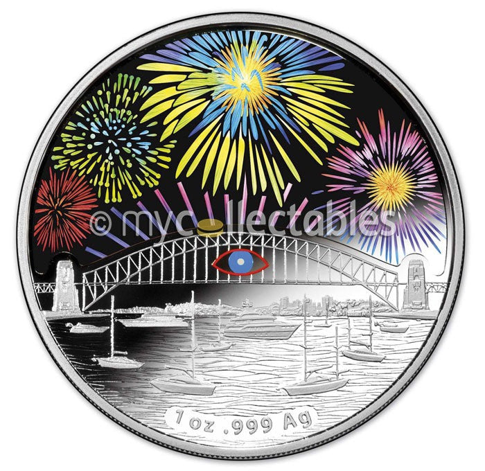 In celebration of this epic event the Royal Australian Mint, working in partnership with the City of Sydney, has released an innovative $1 holographic silver proof coin. The colour of the hologram will change to show the bursts of light appearing over the popular Australian landmark, Sydney Harbour Bridge, replicating the stunning fireworks.