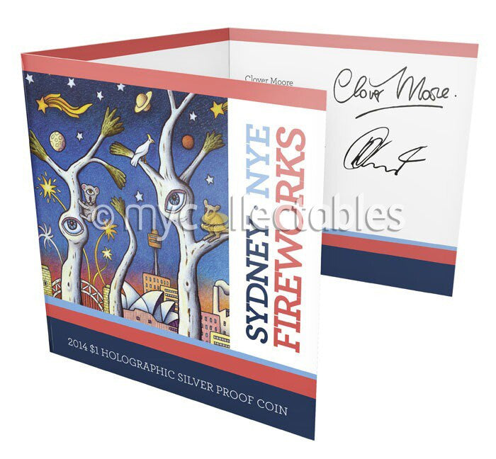 2014 $1 Holographic Silver Proof Coin - Sydney New Year’s Eve Fireworks - Certificate of Authenticity #44
