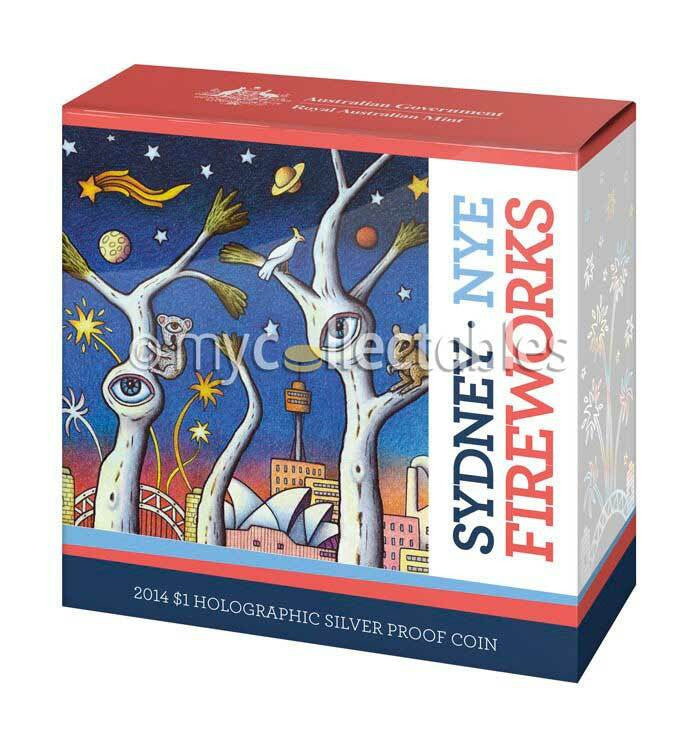 2014 $1 Holographic Silver Proof Coin - Sydney New Year s Eve Fireworks COA #44