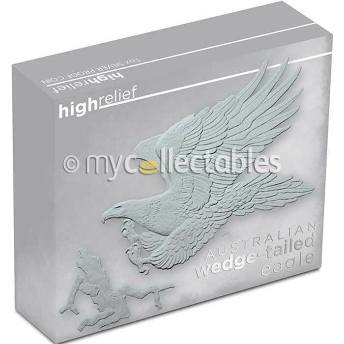 The Perth Mint will issue no more than 10,000 of these Australian Wedge-Tailed Eagle 2014 1oz Silver Proof High Relief Coins.