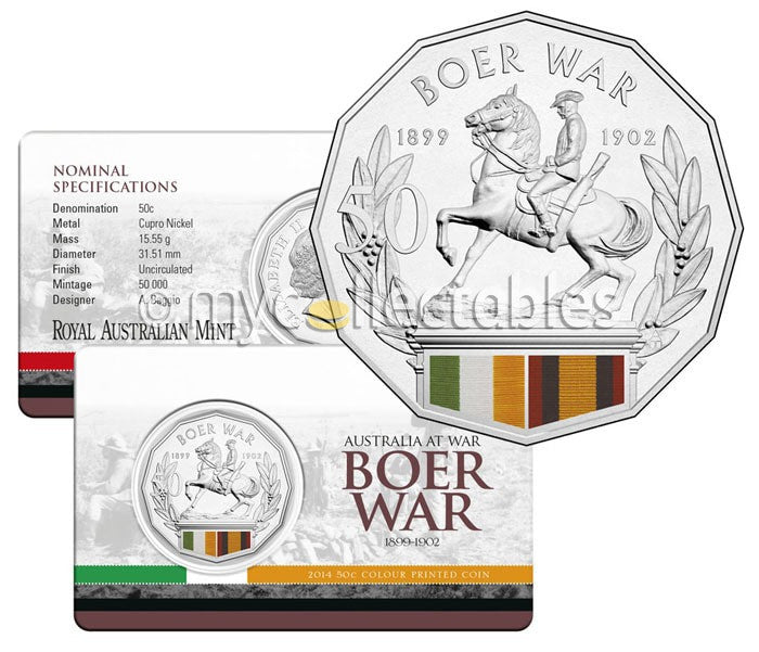 2014 50c CuNi Colour Printed Uncirculated Australia at War - Boer War