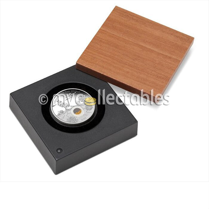 Each coin is packaged in a prestigious display case with a timber lid and beautifully illustrated shipper, and is accompanied by a numbered Certificate of Authenticity.