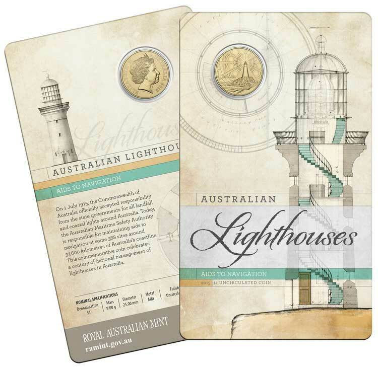 On 1 July 1915, the Commonwealth of Australia officially accepted responsibility from the state government for all landfall and coastal lights around Australia. Today, the Australian Maritime Safety Authority is responsible for maintaining aids to navigation at some 388 sites around 37,600 kilometres of Australian coastline. These commemorative coins celebrate a century of national management of Australian lighthouses.