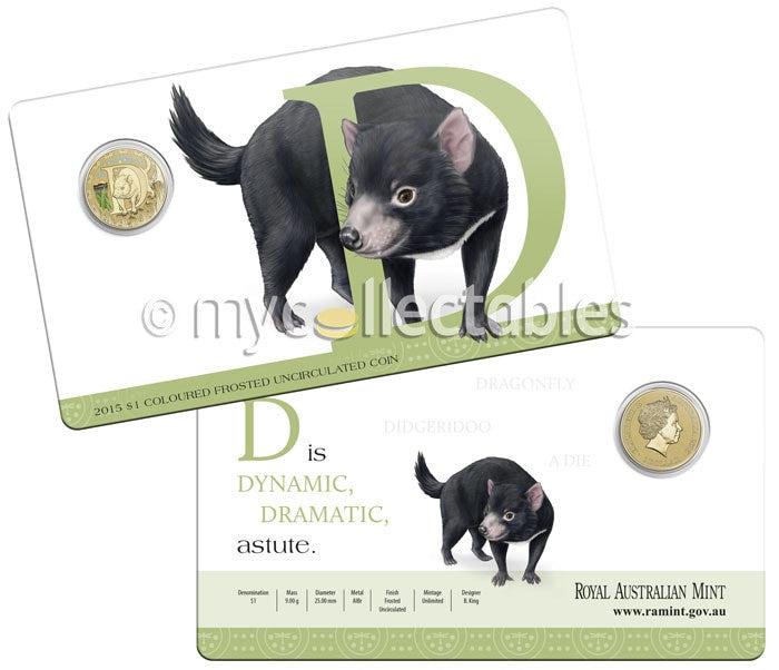 2015 $1 Colour Printed Frosted Uncirculated Alphabet Collection Letter D Coin