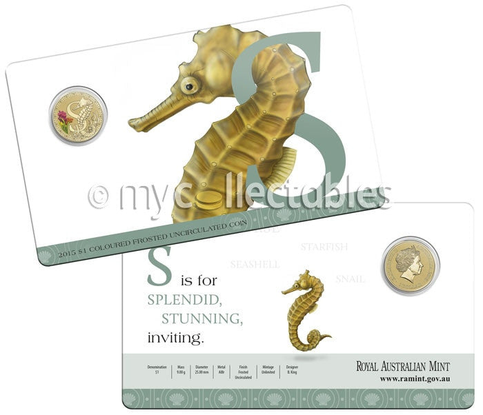 2015 $1 Colour Printed Frosted Uncirculated Alphabet Collection Letter S Coin