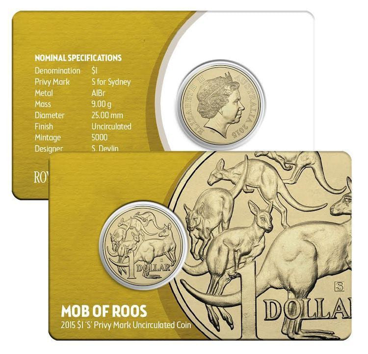 2015 $1 'S' Sydney Privy Mark Uncirculated Coin - Mob of Roos