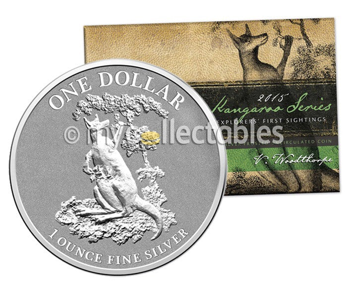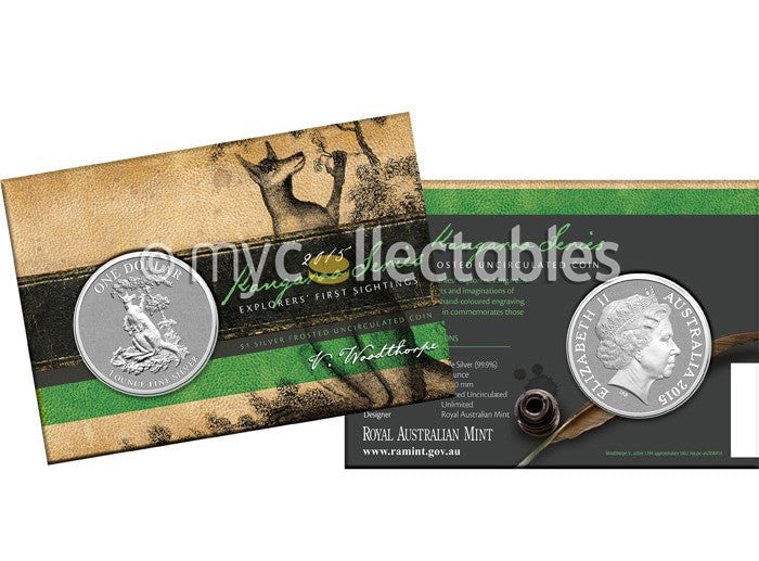 2015 $1 Silver Frosted Unc Coin - Explorers First Sightings - Kangaroo Series