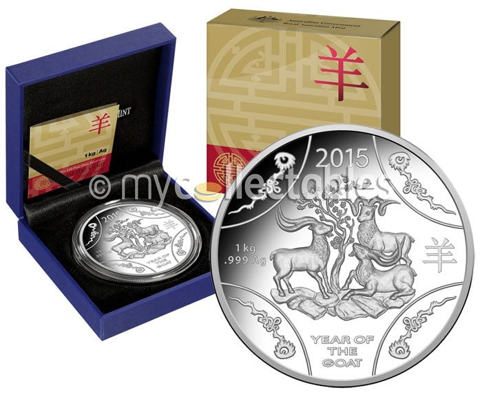 2015 $30 1 Kilo Silver Proof Coin Lunar Series Year of the Goat