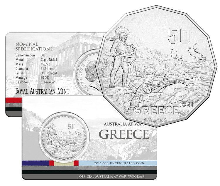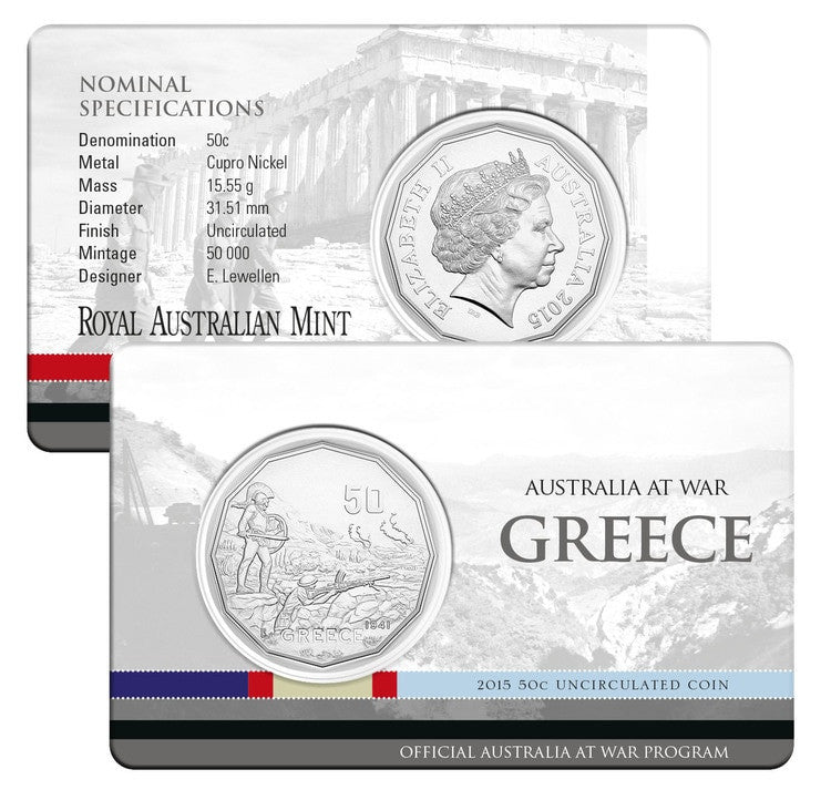 2015 50c Uncirculated Coin - Australia at War - Greece