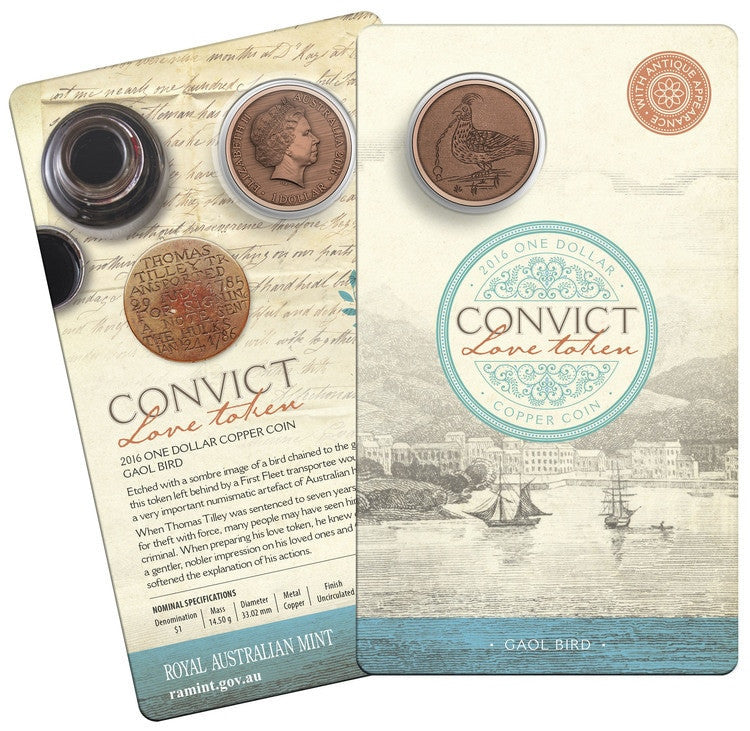 2016 $1 Copper Uncirculated Coin - Convict Love Token - Gaol Bird