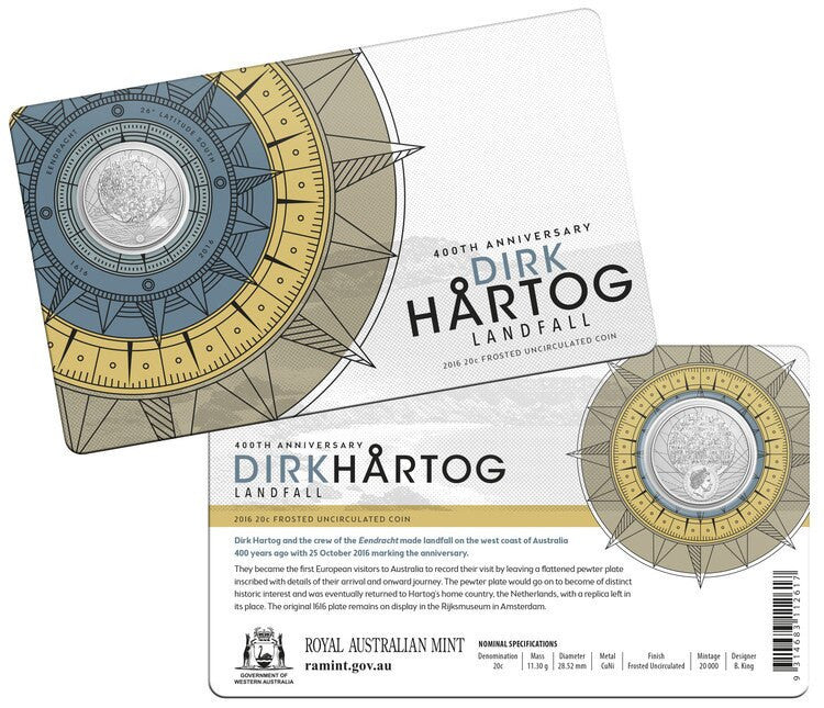 2016 20c Frosted Unc Coin - 400th Anniversary of Dirk Hartog’s Landfall