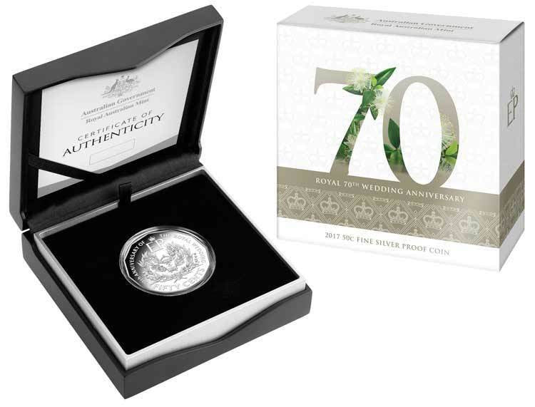 2017 50c Fine Silver Proof Coin - ROYAL 70TH WEDDING ANNIVERSARY