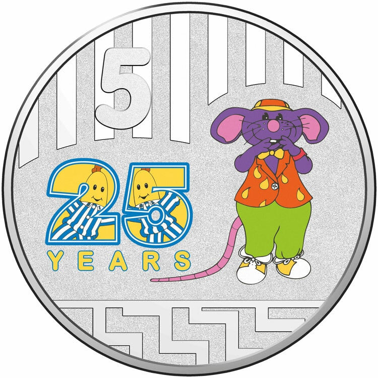 Australia’s first ever coloured five cent coin is pairing up with the 20 cent coin in a bright and cheerful two coin set to celebrate 25 years of the Bananas in Pyjamas on ABC KIDS. Enchanting young viewers with imagination-filled ideas, B1 and B2 and friends make this set a must-have for gift buyers, young collectors and nostalgic fans.