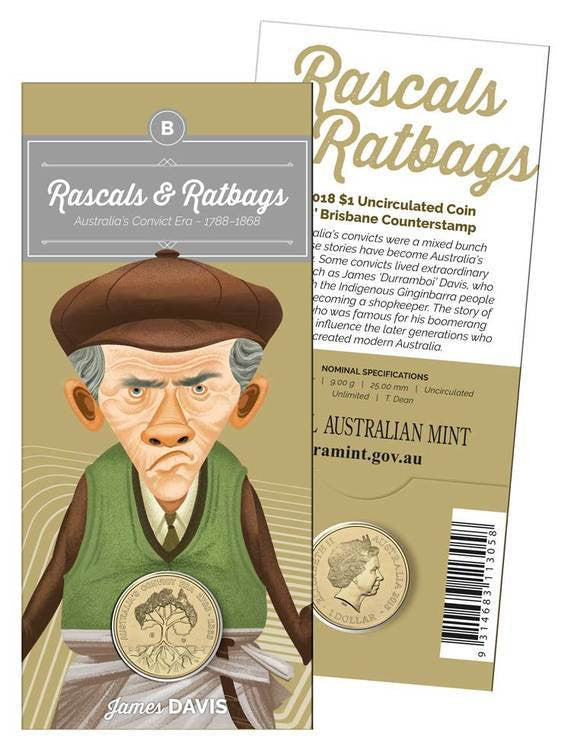 2018 $1 AlBr 'B' Counterstamp Australias Convict Era - Rascals and Ratbags