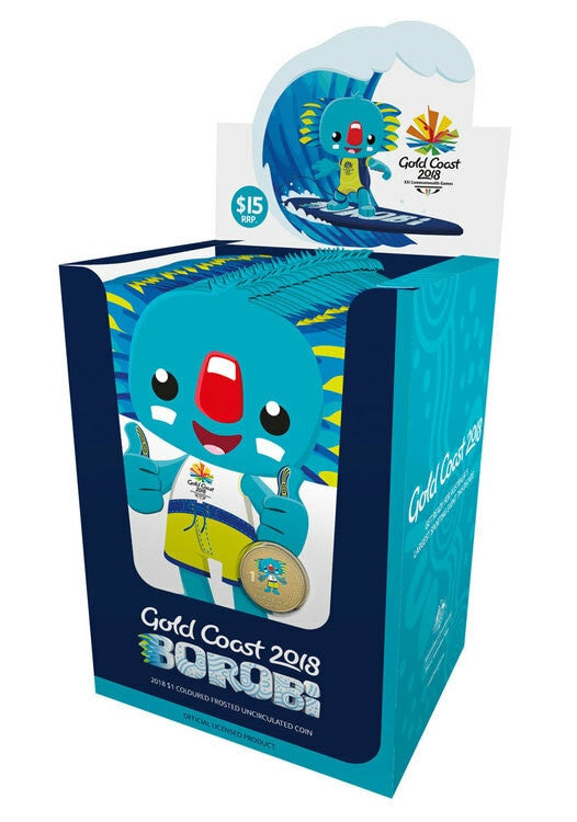 2018 $1 AlBr Colour Frosted Unciruclated Coin- XXI Commonwealth Games- Borobi- Full Box (25 Qty)