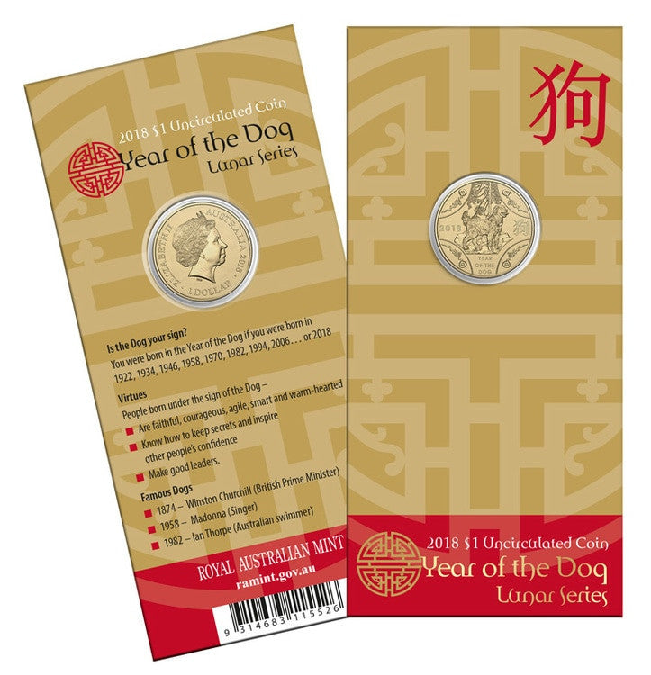 • The reverse features an artistic representation of a dog surrounded by the original Lunar Series design elements