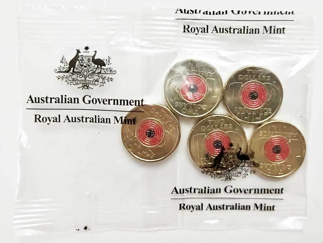 2018 $2 AlBr Coin - Remembrance Day - Armistice Centenary - Mint Bag of 5