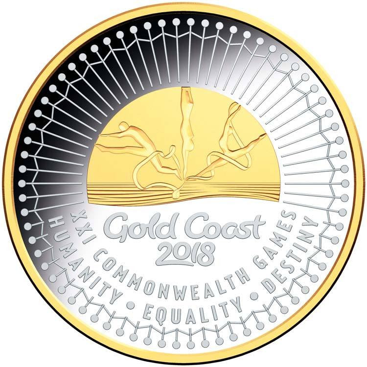 • Coin’s reverse features the Australian sun radiating a range of sporting talents, encircled by figures representing the 70 nations and territories competing in the Games