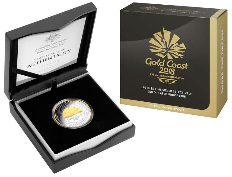 2018 $5 Selectively Gold Plated Proof Coin - Gold Coast 2018- XXI Commonwealth Games