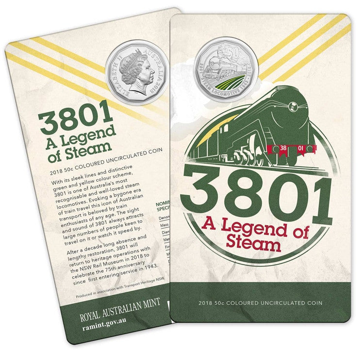 2018 50c Coloured Uncirculated Coin - 3801 A Legend Of Steam