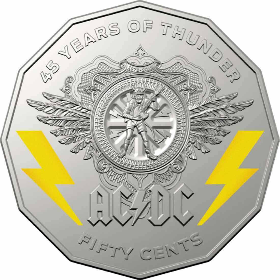 2018 50c Coloured Uncirculated Coin - AC/DC 45 Years of Thunder