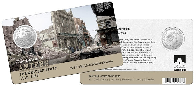 2018 50c CuNi Uncirculated Coin The Western Front - Amiens