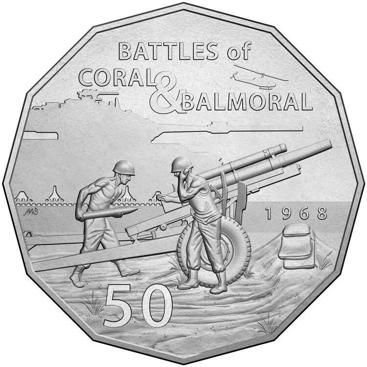Some of the most intense fighting experienced by Australian Forces during the Vietnam War occurred at Fire Support Bases Coral and Balmoral between May and June 1968. The Australians successfully held both bases, but at great cost. The Royal Australian Mint proudly commemorates the 50th anniversary of these events with a striking uncirculated 50 cent coin.