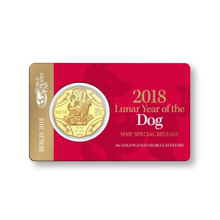 2018 50c Year of the Dog WMF Gold Plated CuNi Unc Coin