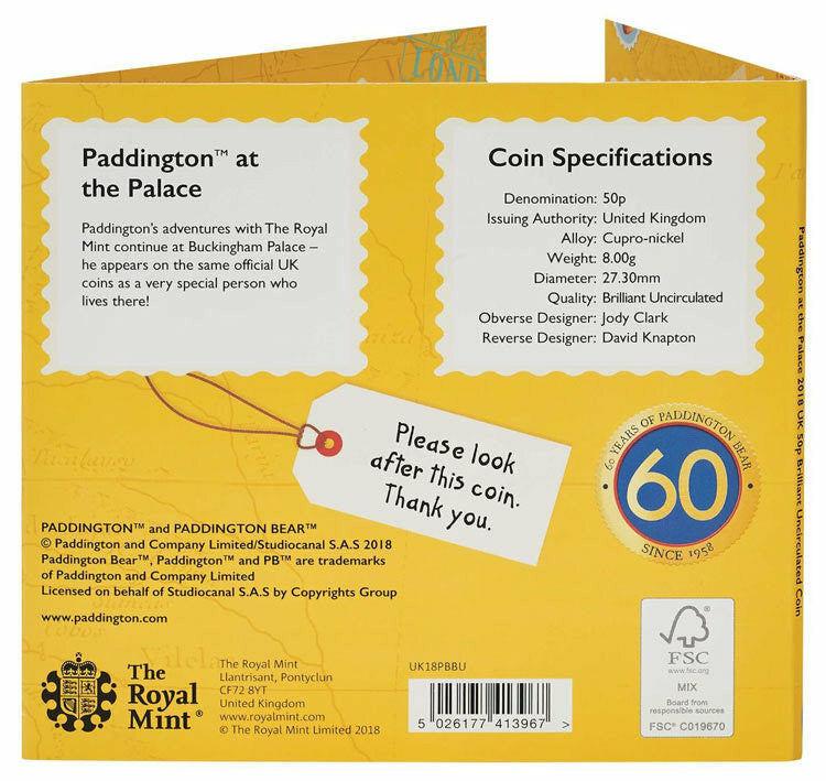 Hot on the heels of its predecessor's success, the Royal Mint has released a new coin in the popular Paddington Bear series! The 2018 50p Paddington Bear Buckingham Palace Cu-Ni Brilliant Uncirculated Coin places the children's storybook character outside Buckingham Palace, where he came face-to-face with his hero in Paddington Meets the Queen.