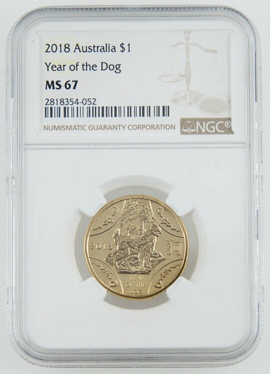 2018 Australia $1 Year of the Dog NGC Graded MS67 Gem Unc