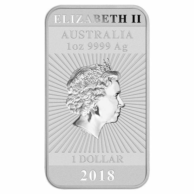 Struck in the shape of popular minted bars, this new rectangle-shaped Dragon bullion coin is issued as Australian legal tender with the obverse portraying the 2018 year-date and the Queen’s effigy.