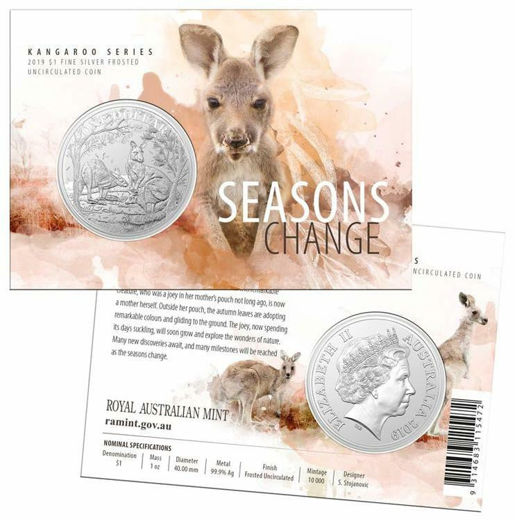 2019 $1 Ag Frosted Uncirculated - Kangaroo Series- Seasons Change In Card