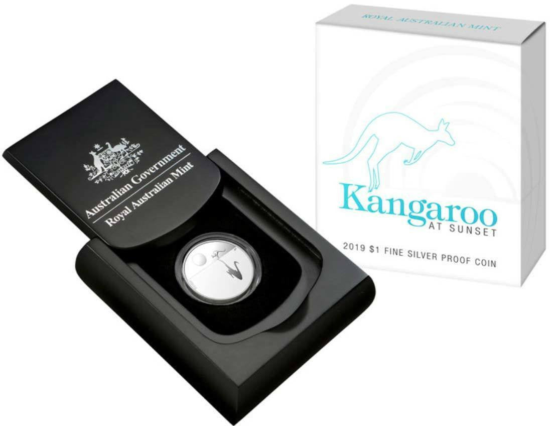 2019 $1 Ag Proof Coin - Kangaroo at Sunset