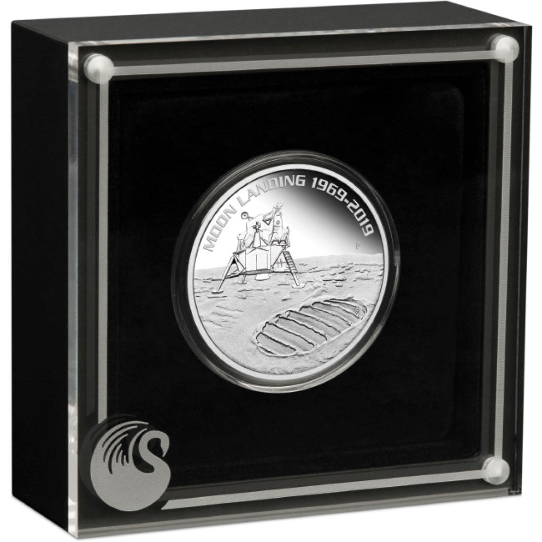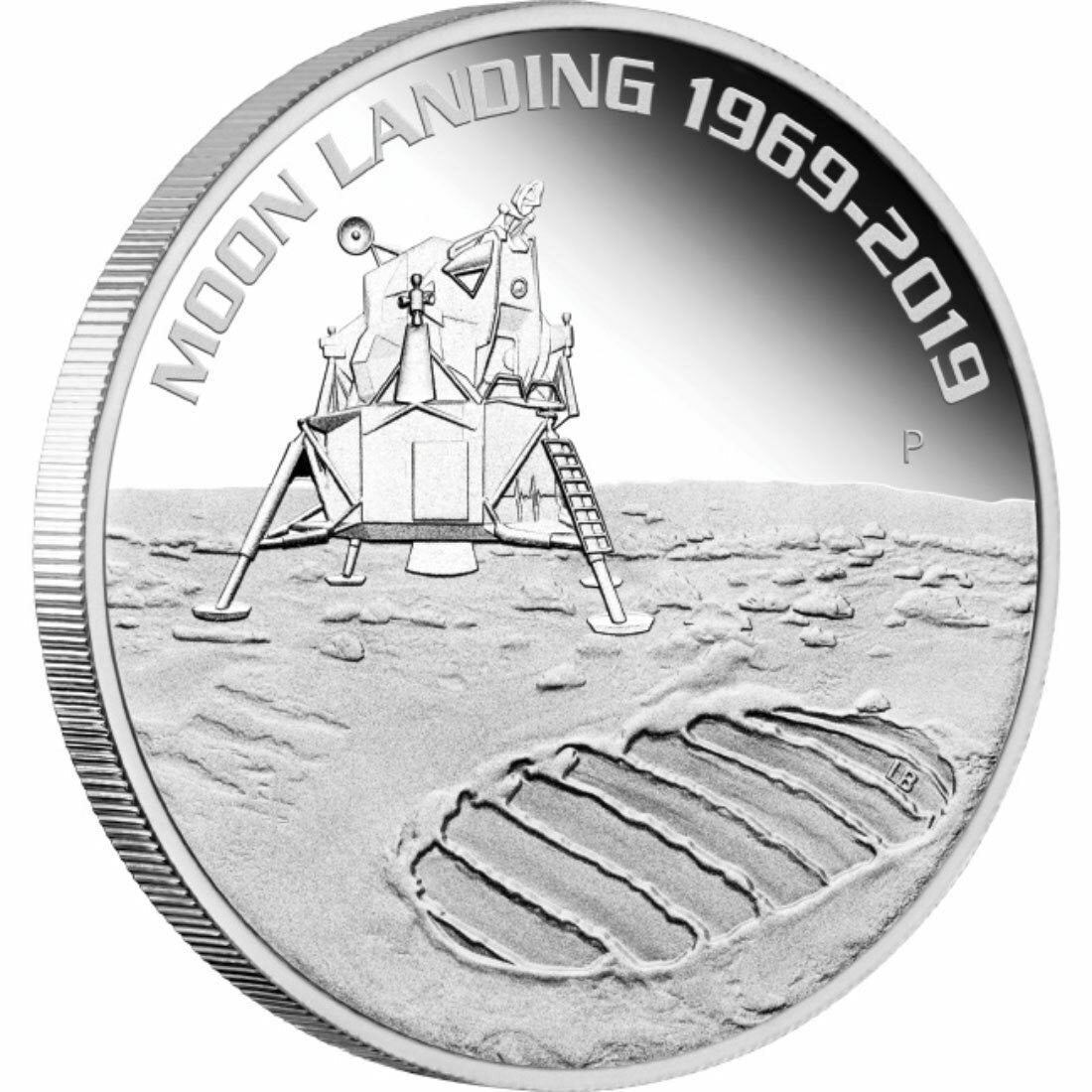 Struck by The Perth Mint from 1oz of 99.99% pure silver, the coin design portrays a representation of the Lunar Module Eagle landing on the Moon behind a large footprint on the Moon’s surface. The design includes the inscription ‘MOON LANDING 1969-2019’. The obverse depicts the Jody Clark effigy of Her Majesty Queen Elizabeth II and the monetary denomination.