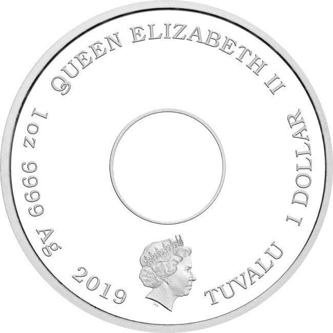 The coin’s obverse depicts the Ian Rank-Broadley effigy of Her Majesty Queen Elizabeth II, the monetary denomination, the weight and fineness, and the 2019 year-date.
