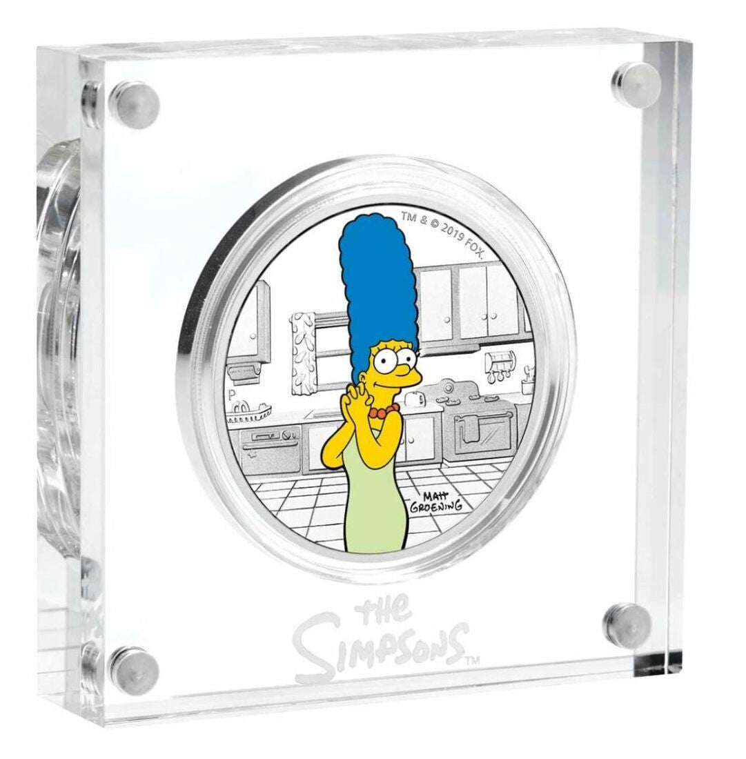 The third release in the exceptional The Simpsons coin series features Marge Simpson. Marge is the moralistic force in her family and often provides a grounding voice in the midst of her family's antics by trying to maintain order in the Simpson household.