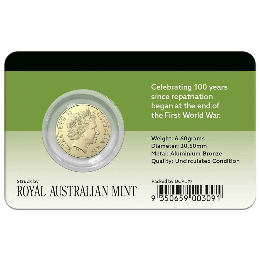 This new Australian legal tender $2 has been issued to honour the 100th anniversary of the Repatriation of Australian WWI soldiers. It's a must-have for every collector.