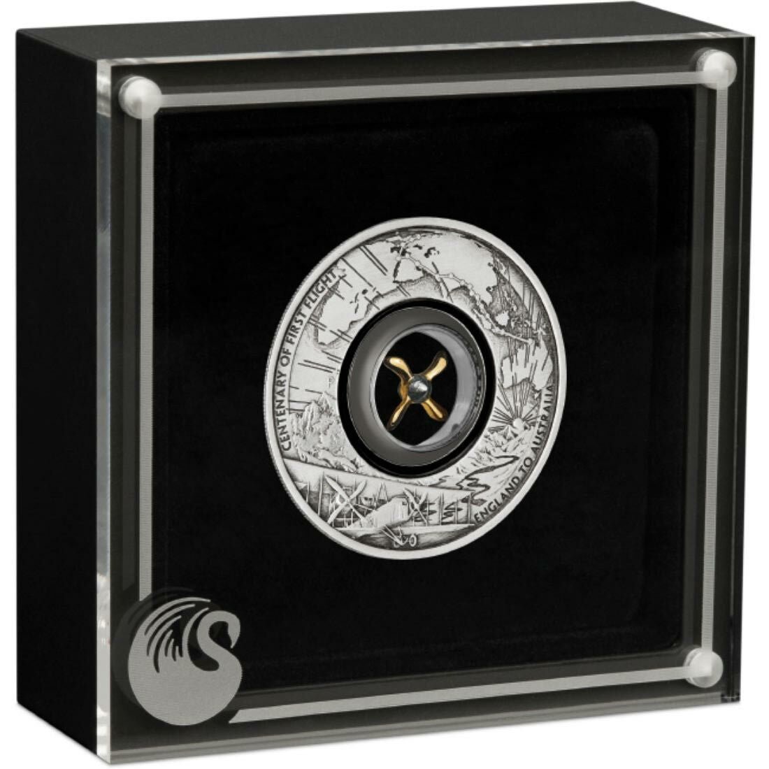 This exciting new coin celebrates the 100th anniversary of the first flight from England to Australia.