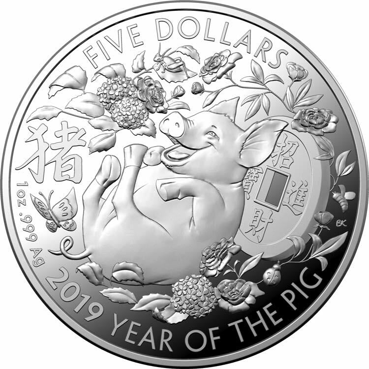 To celebrate 2019, the Lunar Year of the Pig, the Royal Australian Mint is releasing a $5 1oz Fine Silver Proof Coin. The coins in this gorgeous suite celebrate the beautiful and joyous nature of this most auspicious and affluent Lunar animal.