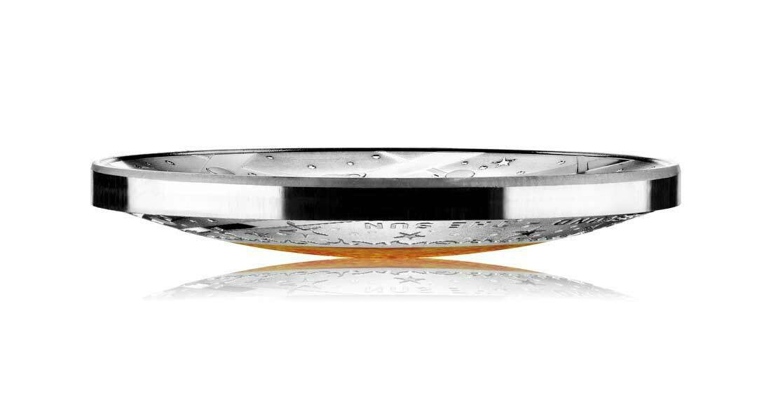 * Coin's reverse, coloured on the convex surface, features the face of the Sun with its surrounding corona