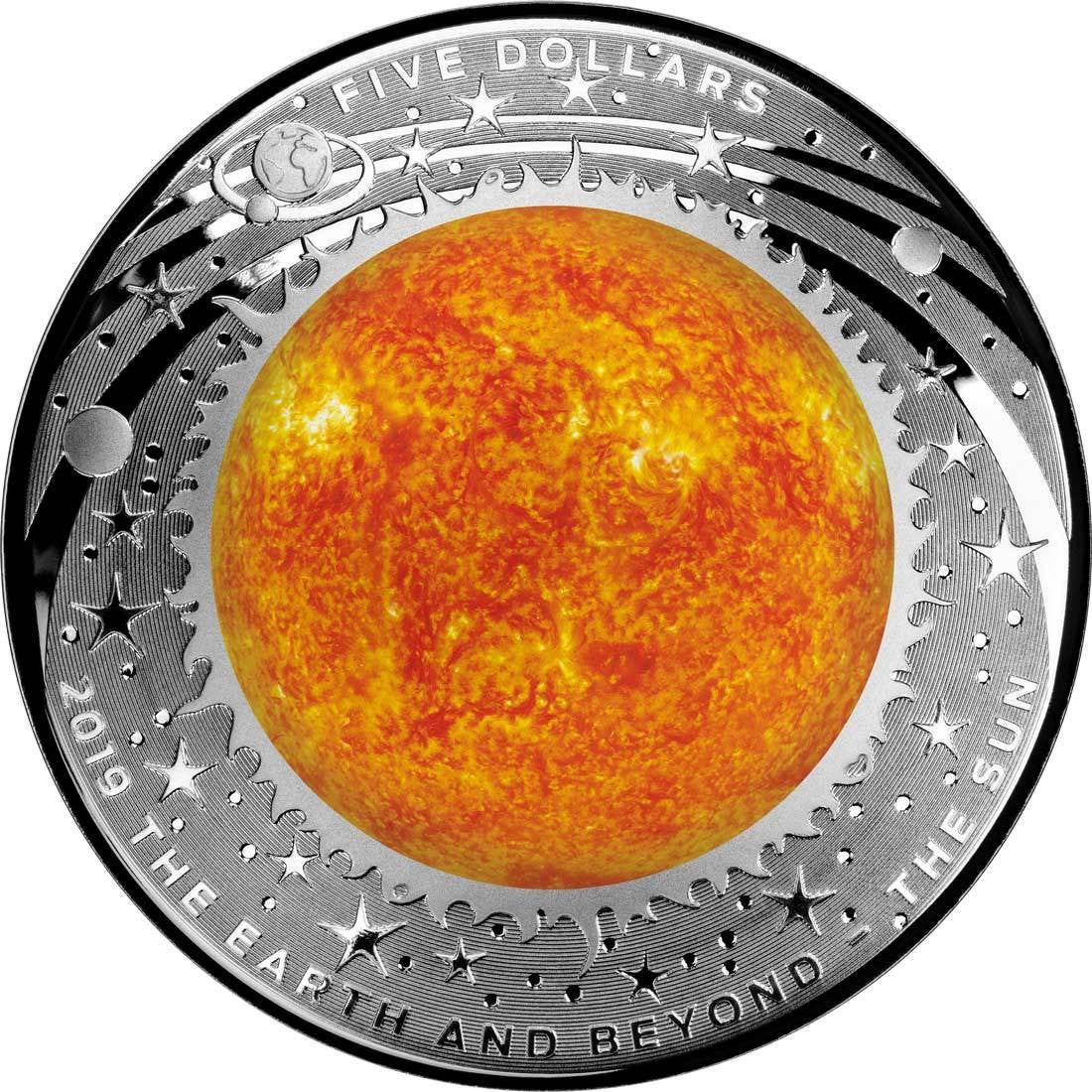 2019 $5 Coloured Domed Silver Proof Coin - The Earth and Beyond - The Sun