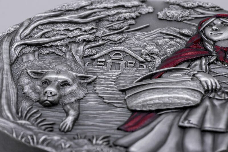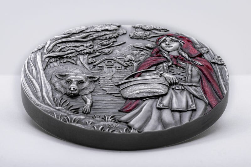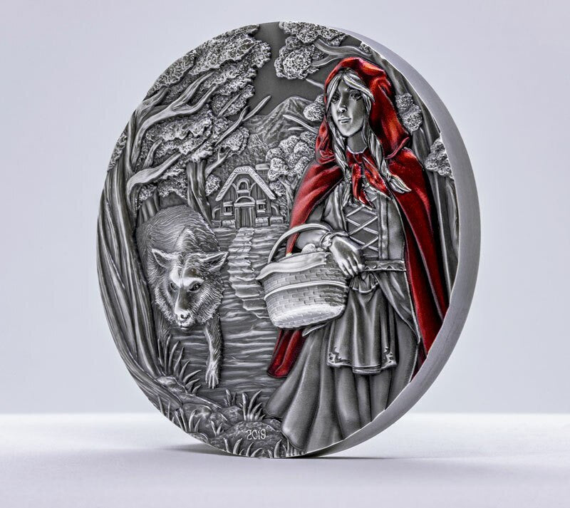 First coin in a new series: Fairy Tales & Fables. Smartminted(r) on a 50mm 3oz silver blank in high relief. Antique finished with partial color (red hood) and unique Cook Islands obverse. A coin that fits anyones collection. Make sure to get the first coin in the series as just 333 pcs are released.