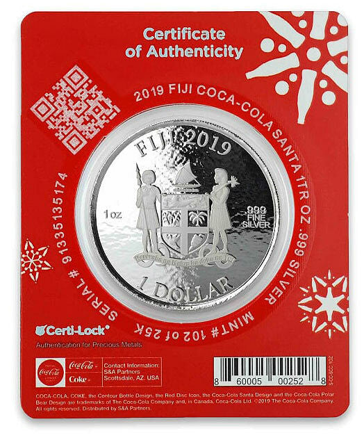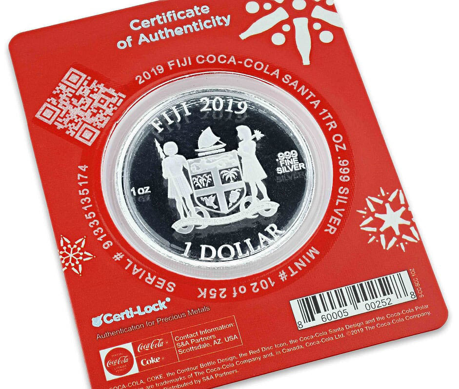 2019 Fiji Coca-Cola Santa 1 oz Silver BU Holiday Coin