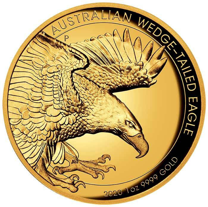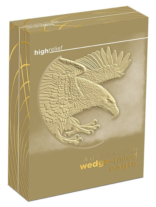 The Australian Wedge-tailed Eagle 2020 1oz Gold Proof High Relief Coin is struck by The Perth Mint from 99.99% pure gold and issued as legal tender under the Australian Currency Act 1965. No more than 500 of these coins will be released worldwide.