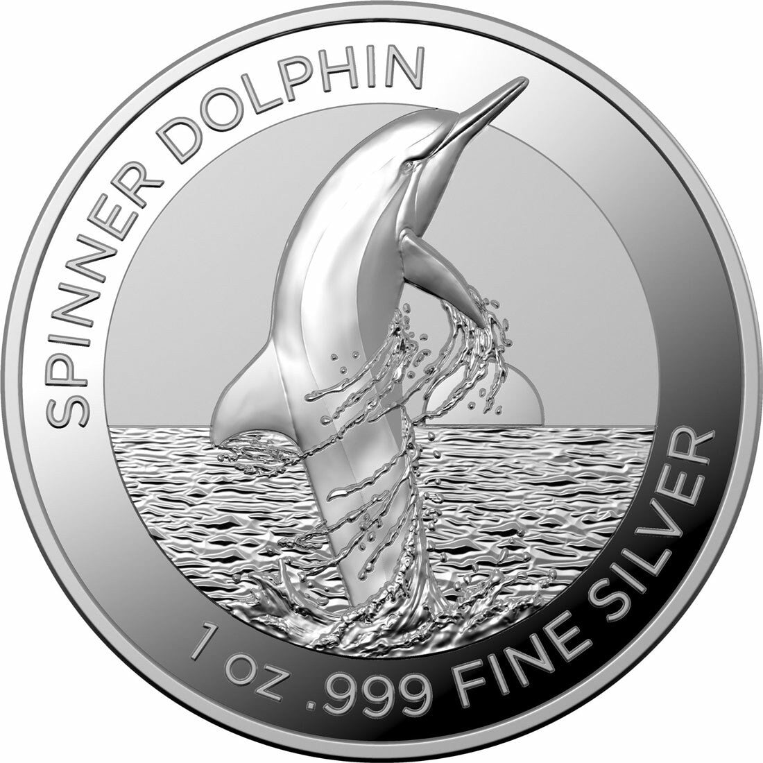 This Silver Proof coin features the Spinner Dolphin design in a detailed, High Relief finish. There is an extremely limited mintage of 1,000 coins worldwide, and each coin includes a display box and numbered certificate of authenticity.