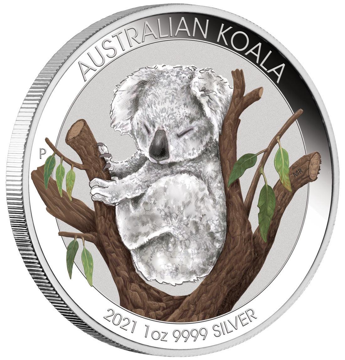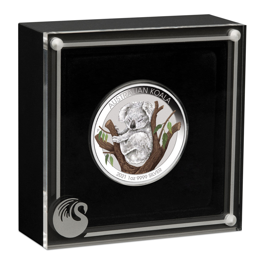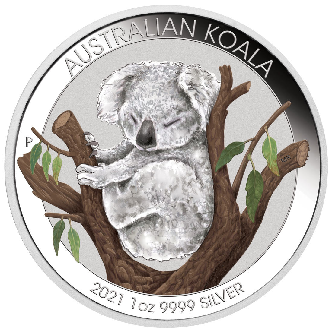 This Brisbane Money Expo ANDA Special portrays a sleepy koala nestled between the branches of a eucalyptus tree in colour. Included on the reverse is The Perth Mint’s traditional ‘P’ mintmark.