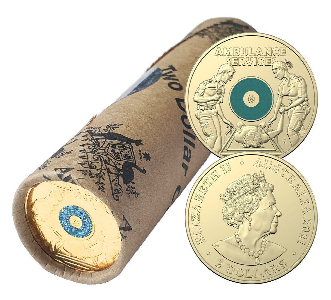 Following the 2019 Police and 2020 Firefighters coin releases, the Royal Australian Mint rounds out its commemoration of Australia's first responders with this 2021 $2 Coloured Circulated Coin Roll, dedicated to our brave and skilled ambulance services.